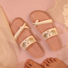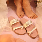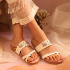 The Haathi Slides bring festive flair with Zari-embroidered elephants symbolizing celebrations. Crafted with a comfortable cork footbed and soft cushioning, they offer all-day comfort with added arch support. Each design brings a hint of romance and elegance perfect for festive evenings.