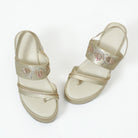 The Trayi Kamal Wedges feature three beautifully hand-embroidered kamal (lotus) motifs with delicate dori work—an elegant blend of tradition and comfort. Designed with a secure cross-toe thong and an elastic back strap, these 4.5” inches wedges ensure a snug grip so you can dance the night away. The eco-foam cushioned insole offers cloud-like comfort, while the lightweight design makes them easy to wear for hours. Perfectly paired with heavy lehengas or festive outfits, these wedges bring grace, height, and stability to every celebration.